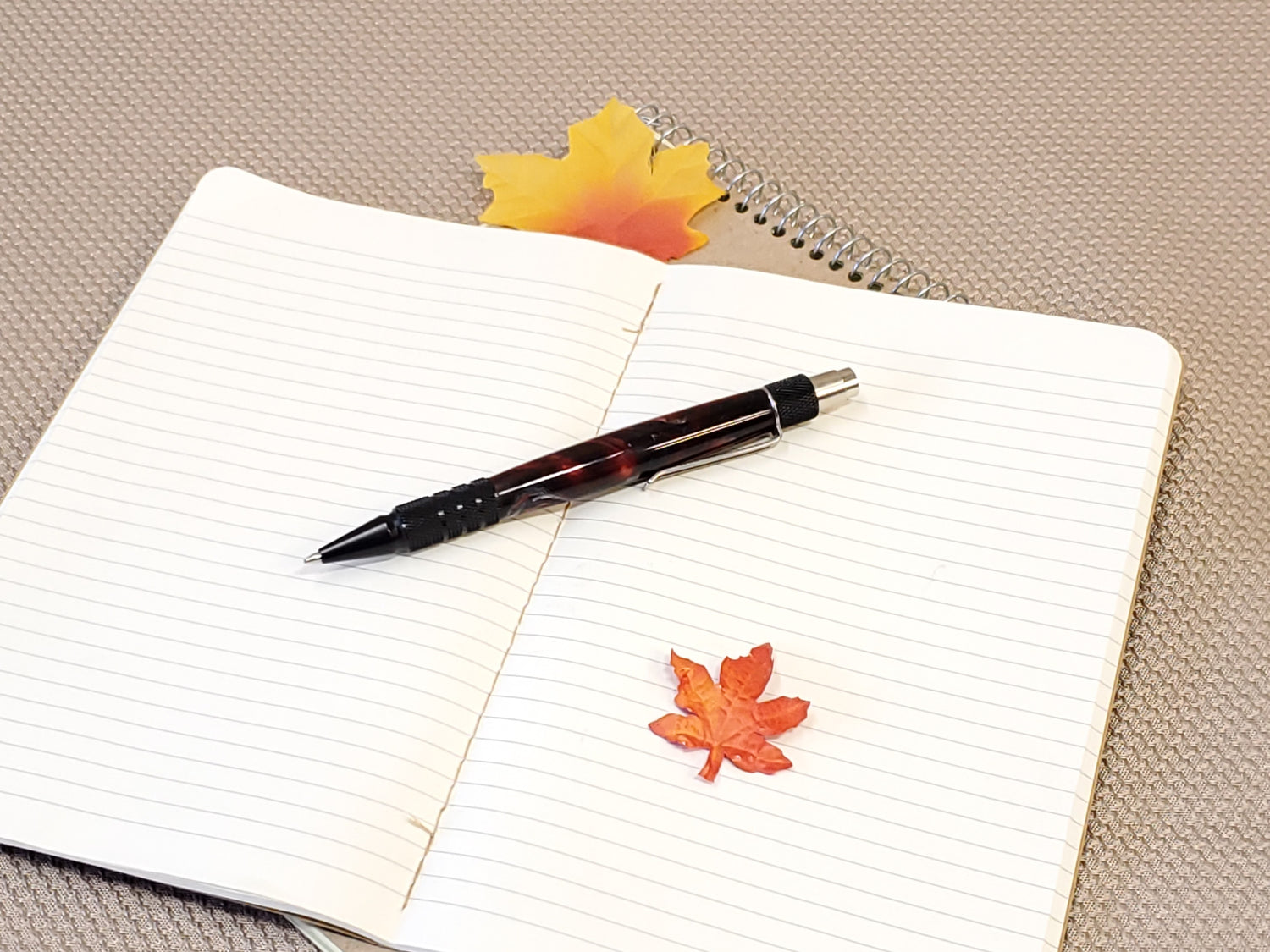 This exquisite pen is made with a beautiful red & black resin swirl and paired with a Black Aluminum finish on the hardware for an unparalleled pen! The pen features a tactical knurled grip and is an excellent pen for EDC.