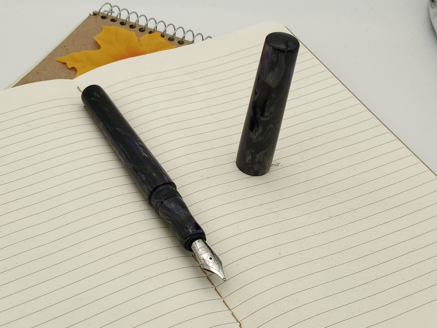This bespoke fountain pen is made from acrylic resin cast with real diamonds! It features a German made #6 JoWo nib and comes with a refillable piston converter and 2 ink cartridges.