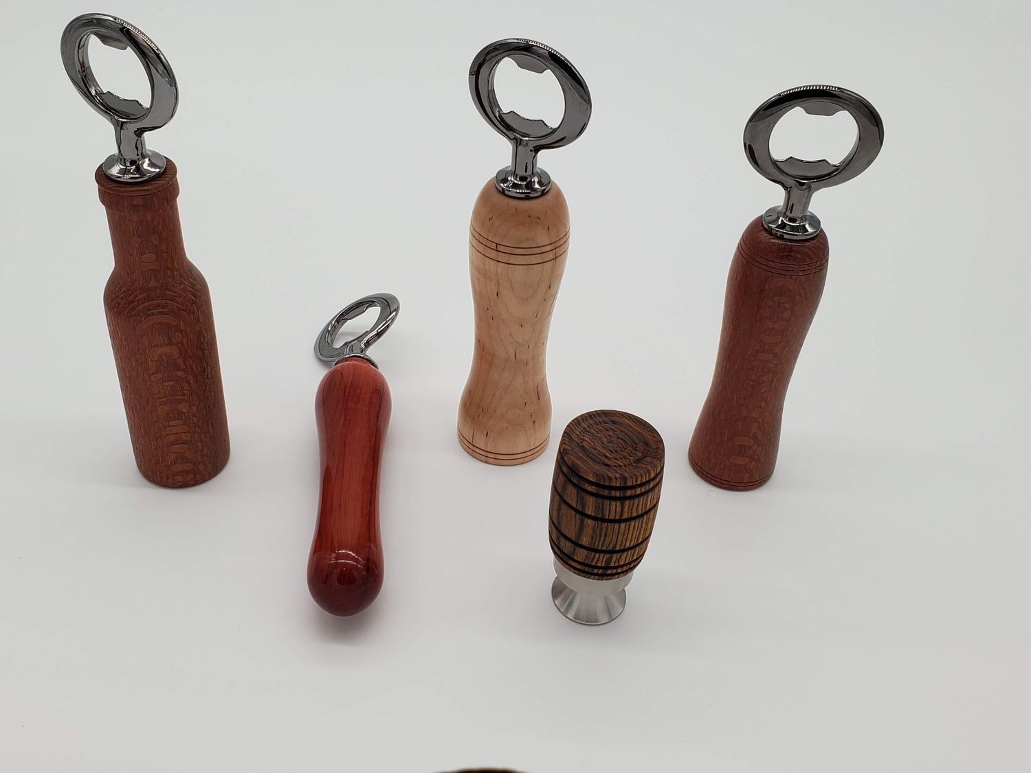 These beautiful hand turned wooden bottle openers are each unique and will be sure to make a perfect gift. Each one is hand crafted from solid wood and is beautifully finished.