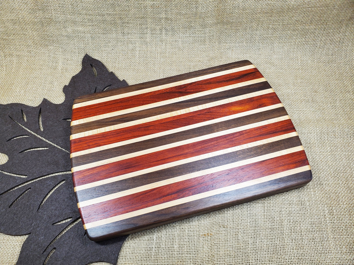 Made with all natual hardwoods, our cutting boards are an elegant way to prepare and serve any meal.  Our boards are reversable and we recommend cutting on one side and using the other side for serving & display.