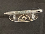As the artist and designer of this pen, each handcrafted pen is a unique one of a kind item, meticulously handcrafted to the highest standards. Each pen goes through a careful process of selecting just the right materials to accentuate the hardware, then through a multi-stage preparation and building process, and finally it is finished and buffed to a high-gloss shine that will keep it looking great for years.