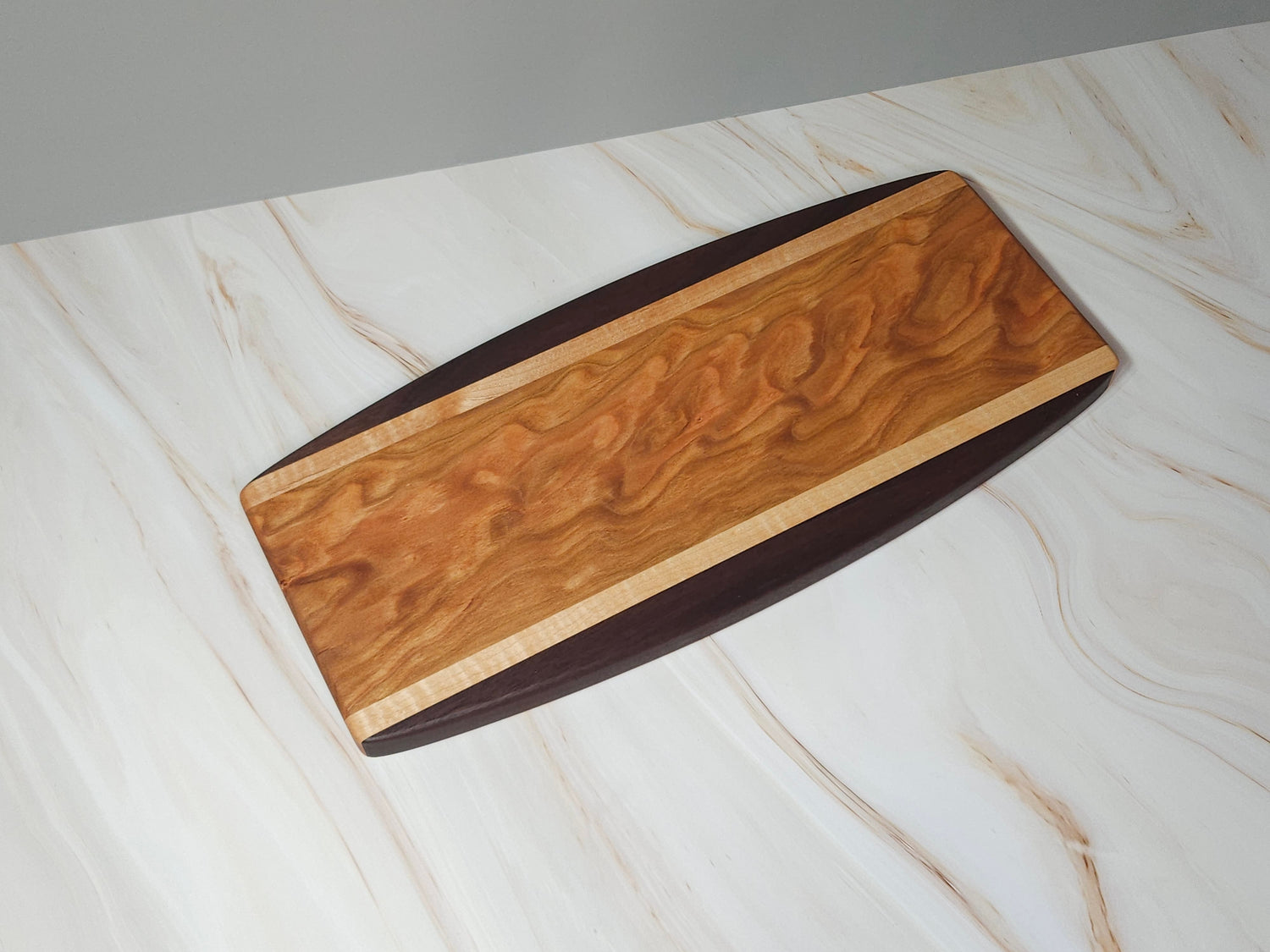 Curly Cherry, Walnut, Maple Curved Charcuterie Board