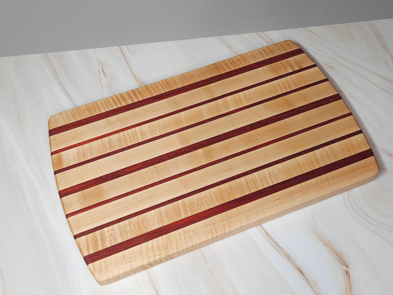 Made with all natual hardwoods, our cutting boards are an elegant way to prepare and serve any meal. Our boards are reversable and we recommend cutting on one side and using the other side for serving & display.