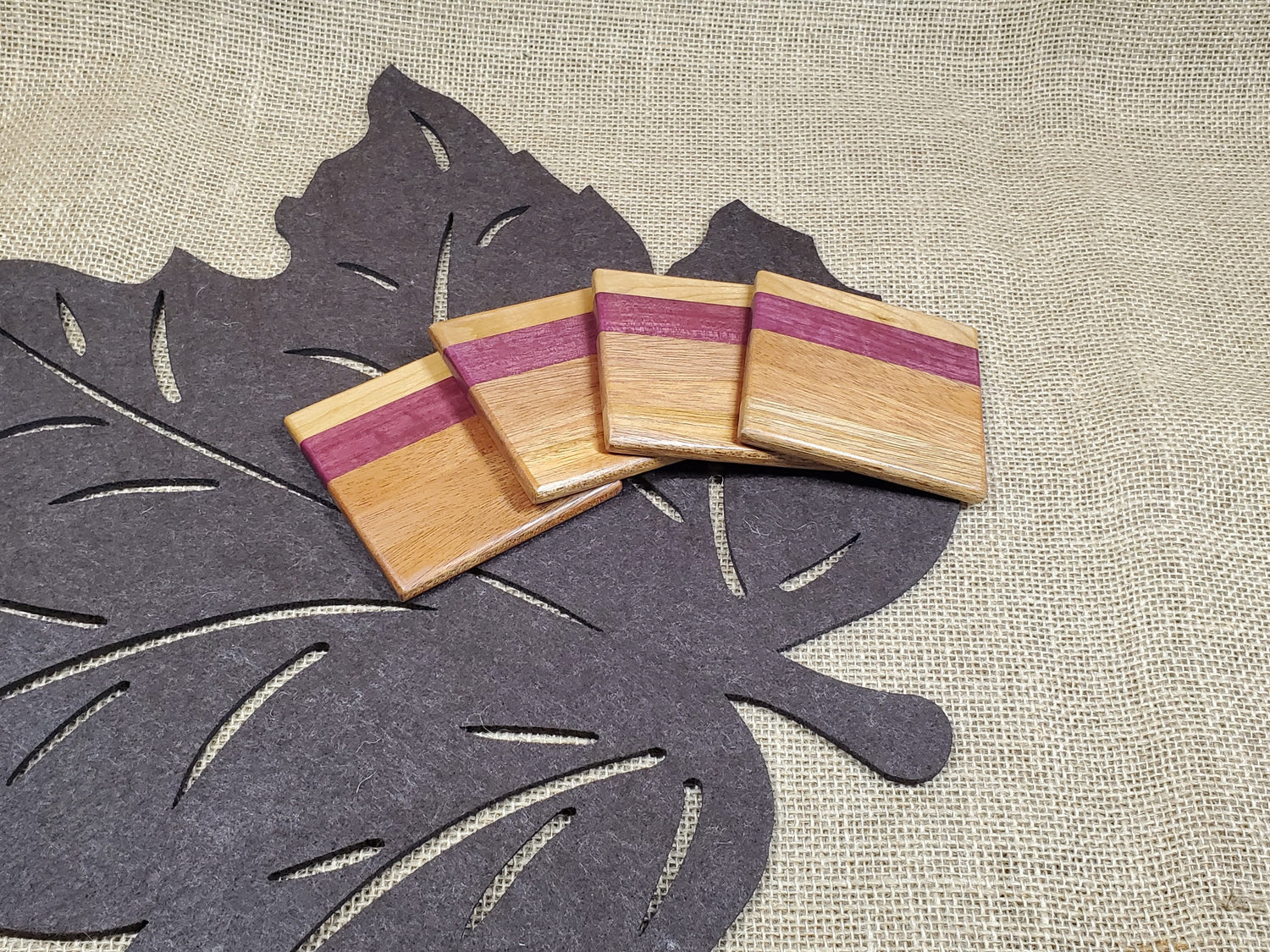 Handcrafted set of 4 coasters. Made from hardwoods.
