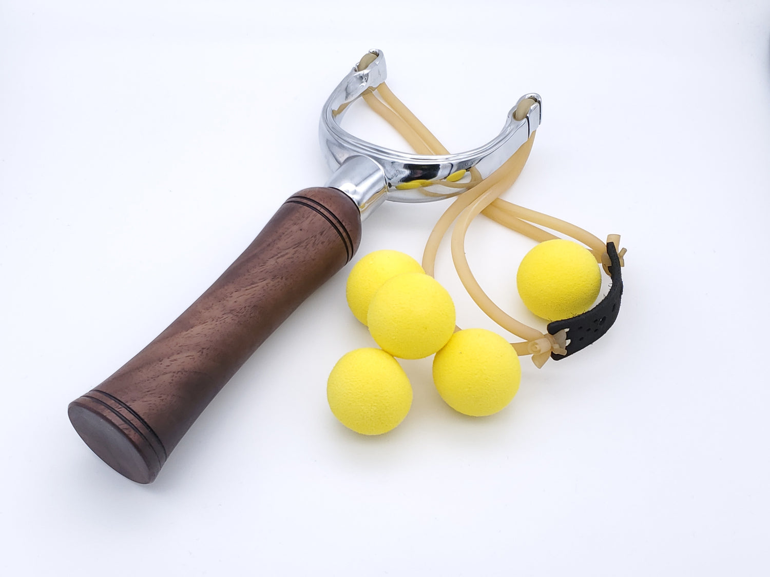 The slingshot comes with 15 EVA soft foam balls. (for parents peace of mind)