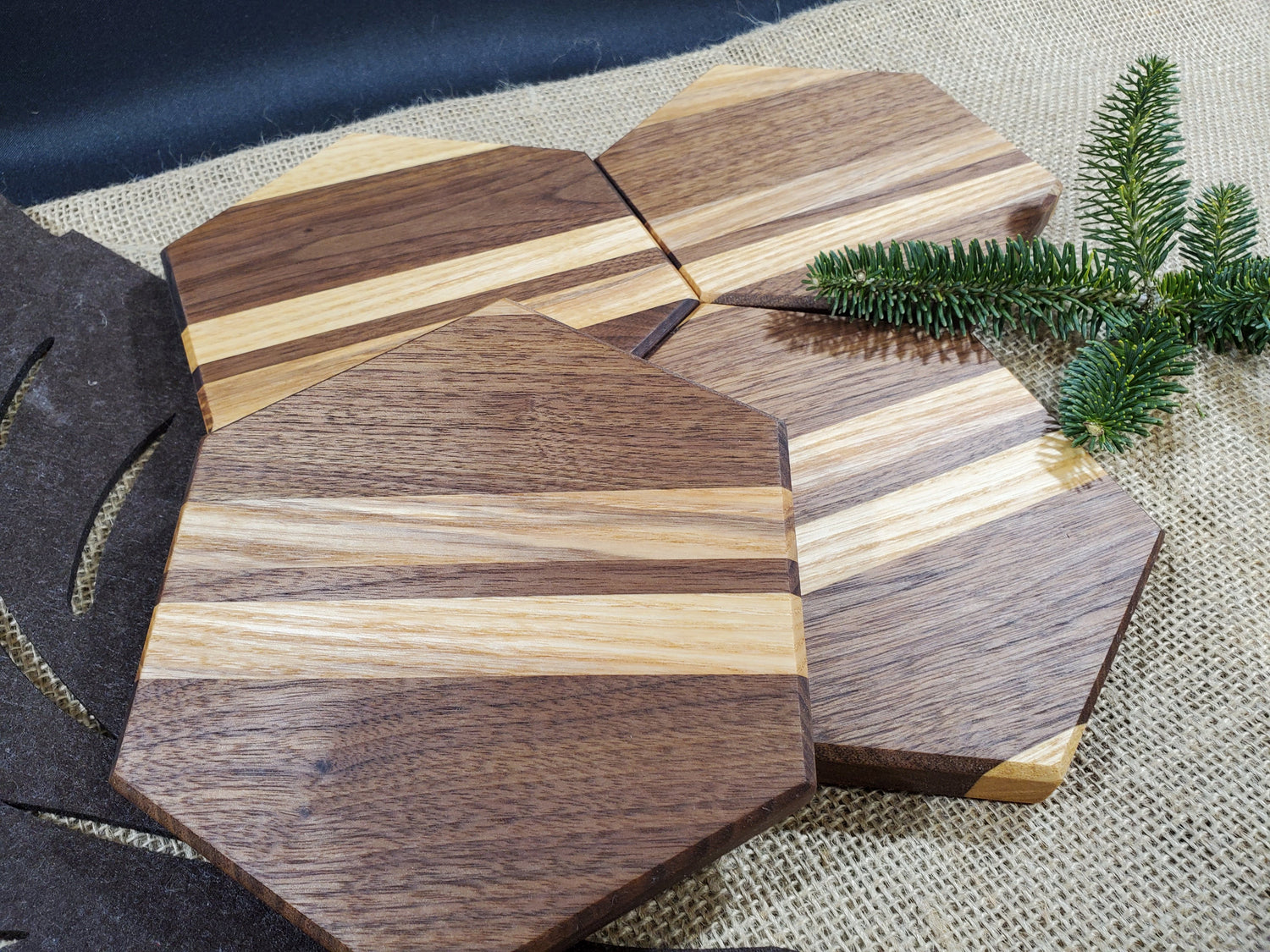 These trivets are made from solid walnut & ash hardwood sourced directly from fallen trees in Indiana.  These trivets are finished with mineral oil and beeswax so you can cut on them as well as take your dish straight from the oven and place them on our trivets without having to worry about the finish not holding up.