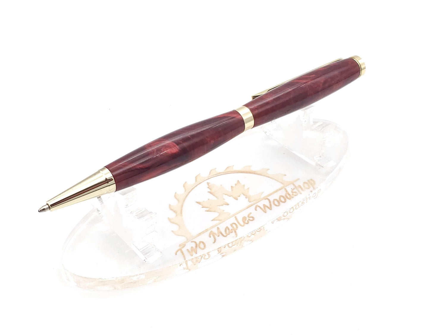 This beautifully handcrafted pen will make a great gift or addition to your desk! The magma red acrylic blank goes perfectly with the gold metal pen, that is truly an amazing work of art that is both functional and beautiful.